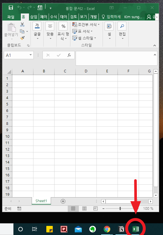 1. 작업표시줄의 활성화 된 엑셀아이콘을