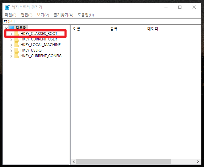3. 레지스트리 편집기에서 HKEY_CLASSES_ROOT 폴더를 클릭합니다.
