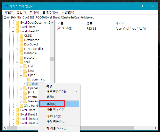 5. ddeexec 폴더를 삭제해줍니다.