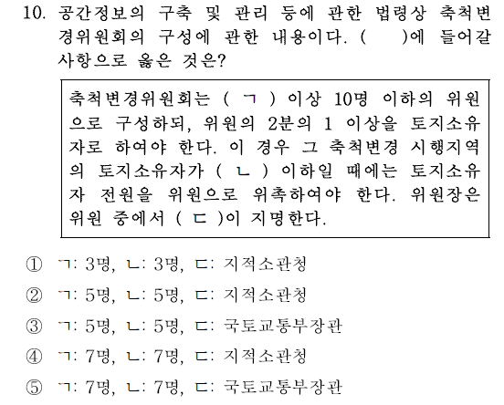 1. 축척변경위원회는 5명 이상 10명 이내의 위원으로 구성한다. 요건은 아래와 같다.