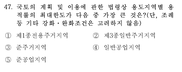5. 「산업입지 및 개발에 관한 법률」 농공단지 : 70퍼센트 이하