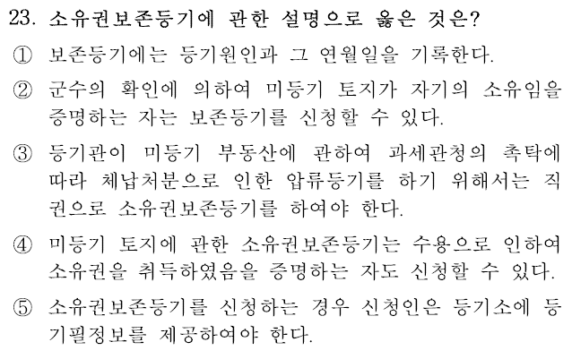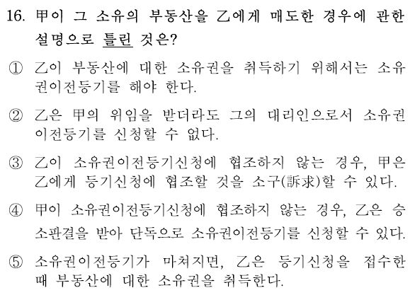 30회 A형 문제 16. 정답 : 2번 (복합문제, 민법 186조, 등기신청인, 등기접수시기와 효력발생 관련 문제)